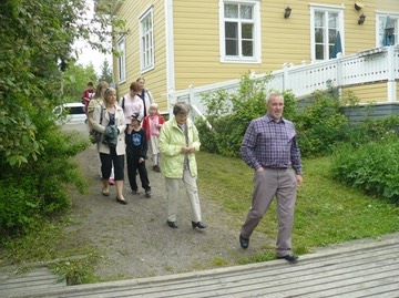 Laivarantaan saapumassa Aune Heino tyttärien perheiden kera.