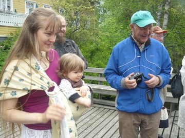 Kellomäkeläisiä kolmessa polvessa: Aarre ja Tiiti sylissään pikku-Teemu. Takana Timo Kellomäki.