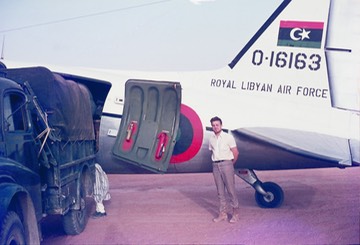 Libyan ilmatieteen laitoksen pääjohtaja A.S. Gibania kuljettanut Libyan kuninkaallisten ilmavoimien kuljetuskone Kufran hiekalla 7.3.1969. Kannattaa huomata koneen pyrstössä oleva kuningaskunnan lippu, jonka kapinalliset ottivat vuonna 2011 uudelleen maan lipuksi.
