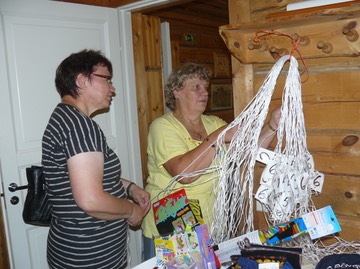 Vuokko Seppälä kävi koettamassa onneaan narunvedossa.